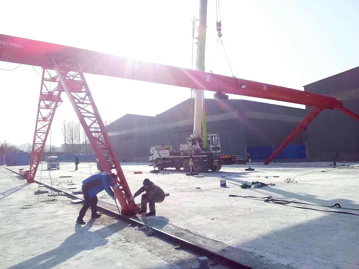 花架式單梁門式起重機是中小型帶外懸臂簡易龍門起重機,電動葫蘆采用CD1和MD1型兩種,主梁是工字鋼和鋼板的組合梁,大車運行機構(gòu)主要由電動機、制動器、減速機、車輪等組成,其結(jié)構(gòu)簡單、安裝、使用、維修方便。該機適合用于工廠、鐵路貨場、港口碼頭、水電站等地:該機工作級別為A3級,操作方式地面和操作室操作,可有可無用戶自行選擇。