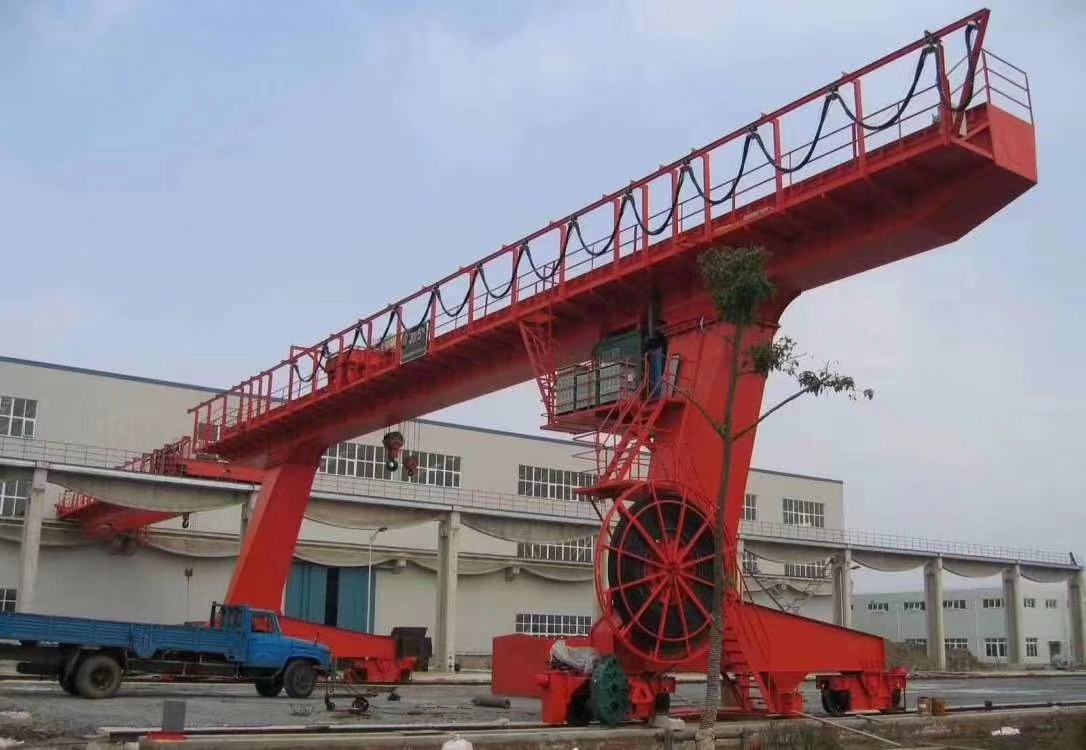 單主梁門式起重機(jī)主梁多為偏軌箱型架結(jié)構(gòu)。單主梁門式起重機(jī)門腿有L型和C型兩種形式。支腿做成傾斜或彎曲形,目的在于有較大的的橫向空間,以使貨物順利通過支腿。