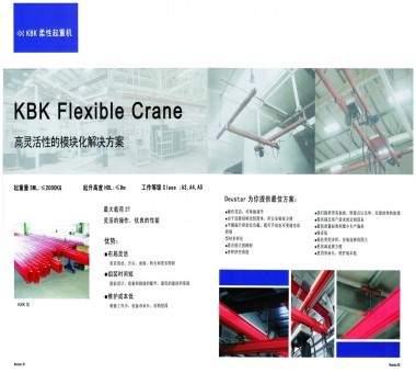 KBK柔性起重機(jī)系統(tǒng)應(yīng)用模塊化設(shè)計(jì)代替?zhèn)鹘y(tǒng)的整機(jī)設(shè)計(jì)概念,將起重機(jī)功能上基本相同的部件制成具有多種用途,有相同聯(lián)接要素和可互換的標(biāo)準(zhǔn)模塊。根據(jù)需要可組成單梁懸掛起重機(jī)、雙梁懸掛起重機(jī)、懸臂起重機(jī)、輕型門式起重機(jī)及堆垛起重機(jī),還能組成大型自動化物料搬運(yùn)系統(tǒng),安全起重范圍覆蓋125kg-2000kg。
