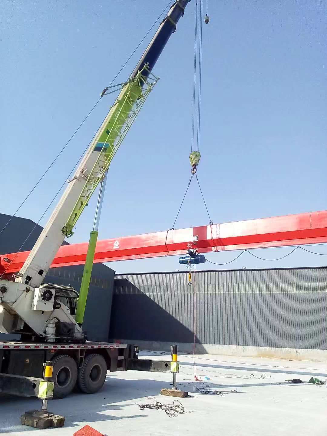花架式單梁門式起重機是中小型帶外懸臂簡易龍門起重機,電動葫蘆采用CD1和MD1型兩種,主梁是工字鋼和鋼板的組合梁,大車運行機構主要由電動機、制動器、減速機、車輪等組成,其結構簡單、安裝、使用、維修方便。該機適合用于工廠、鐵路貨場、港口碼頭、水電站等地:該機工作級別為A3級,操作方式地面和操作室操作,可有可無用戶自行選擇。