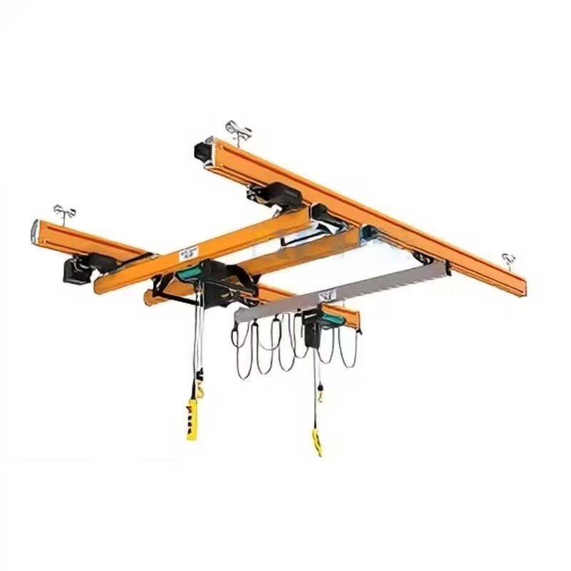 軌道系統(tǒng)通過(guò)懸掛組件固定形成水平運(yùn)行路徑,運(yùn)行小車沿軌道帶動(dòng)葫蘆實(shí)現(xiàn)橫向移動(dòng),葫蘆驅(qū)動(dòng)鏈條完成垂直升降,三重動(dòng)作協(xié)同實(shí)現(xiàn)物料在三維空間的毫米級(jí)定位。鋁合金軌道系統(tǒng)因自重輕,手推操作力可降低 40%,符合人體工程學(xué)設(shè)計(jì)。